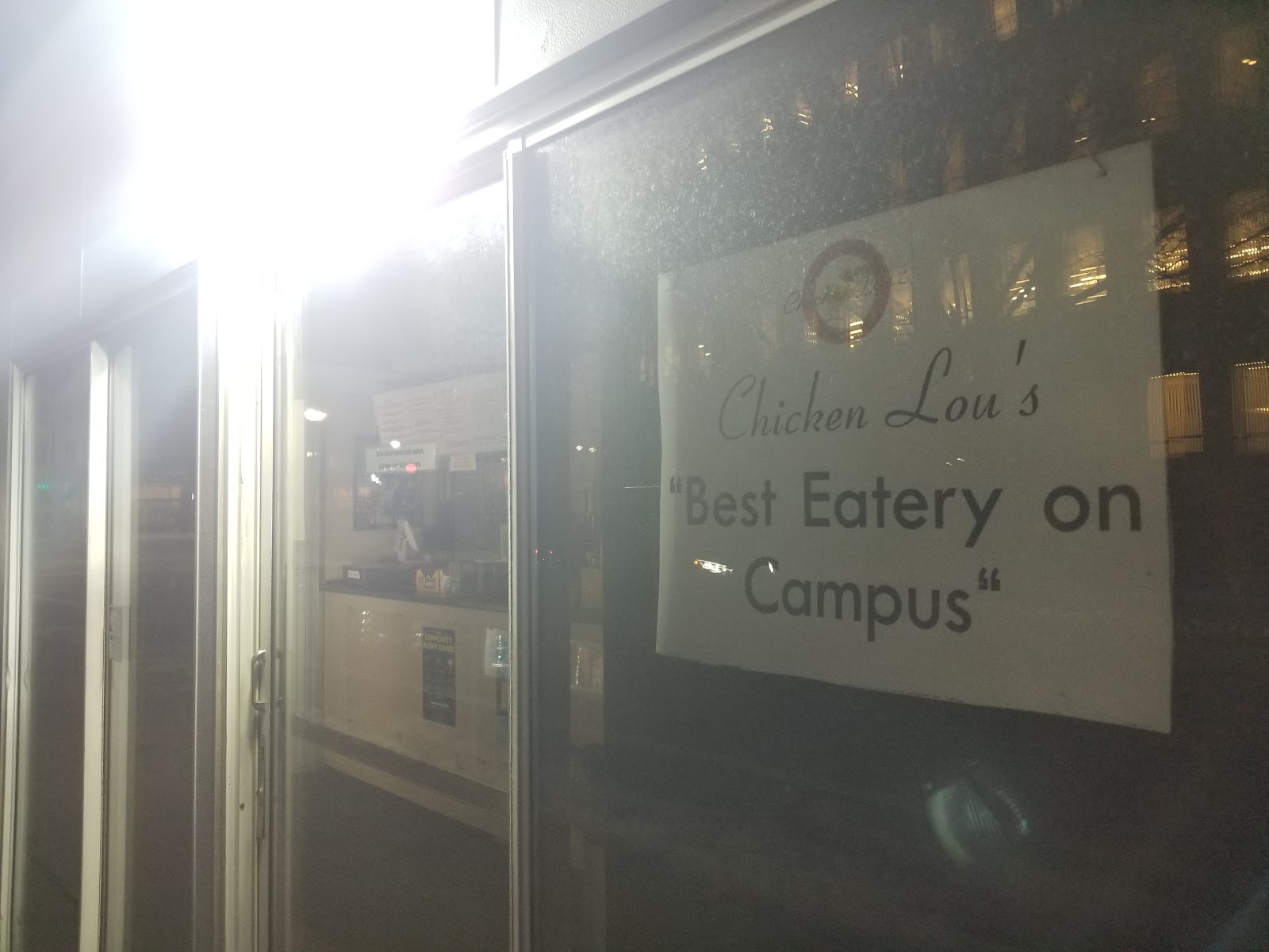 Chicken Lou’s is a locally owned and operated eatery on campus. Their campus presence has been felt since their establishment in 1978, and for many students this is the place to get breakfast, lunch and dinner. Often nights the establishment will close early because they run out of bread and literally cannot serve anymore food.